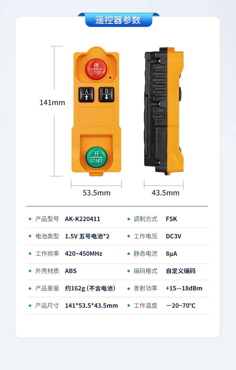 遥控器型号:A:AK-K220411 / B:AK-K231202
