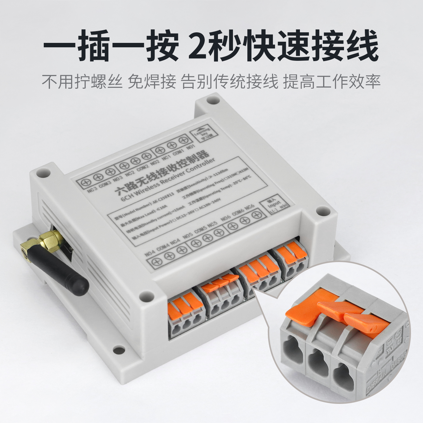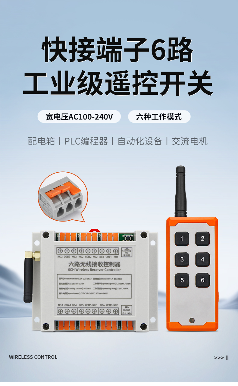 交流快接端子6路工业级遥控开关 AK-C250813
