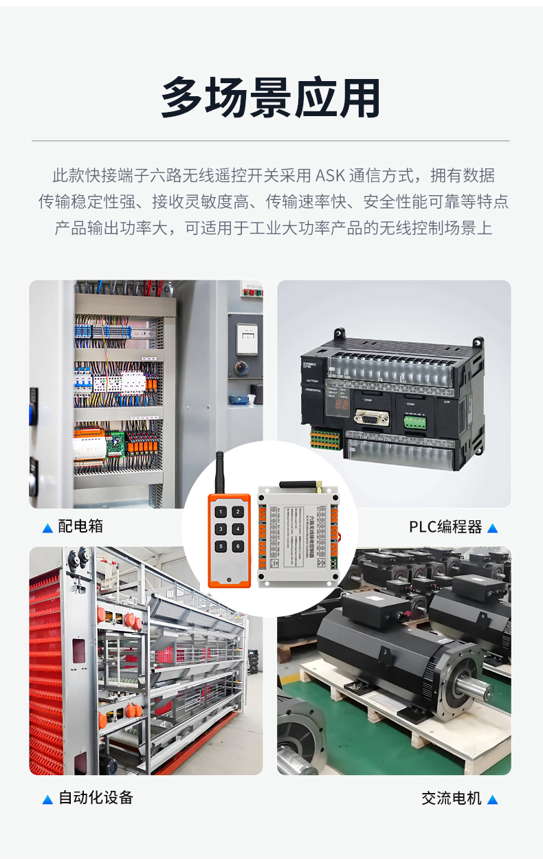交流快接端子6路工业级遥控开关使用场景展示