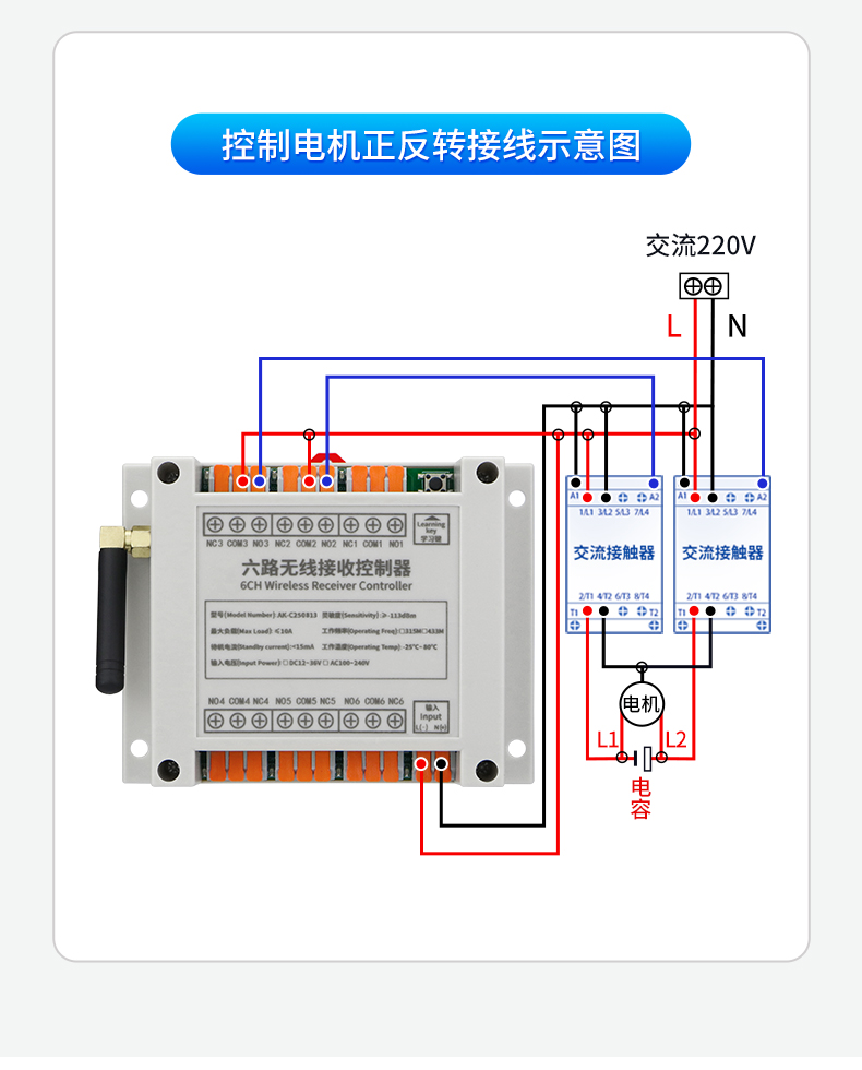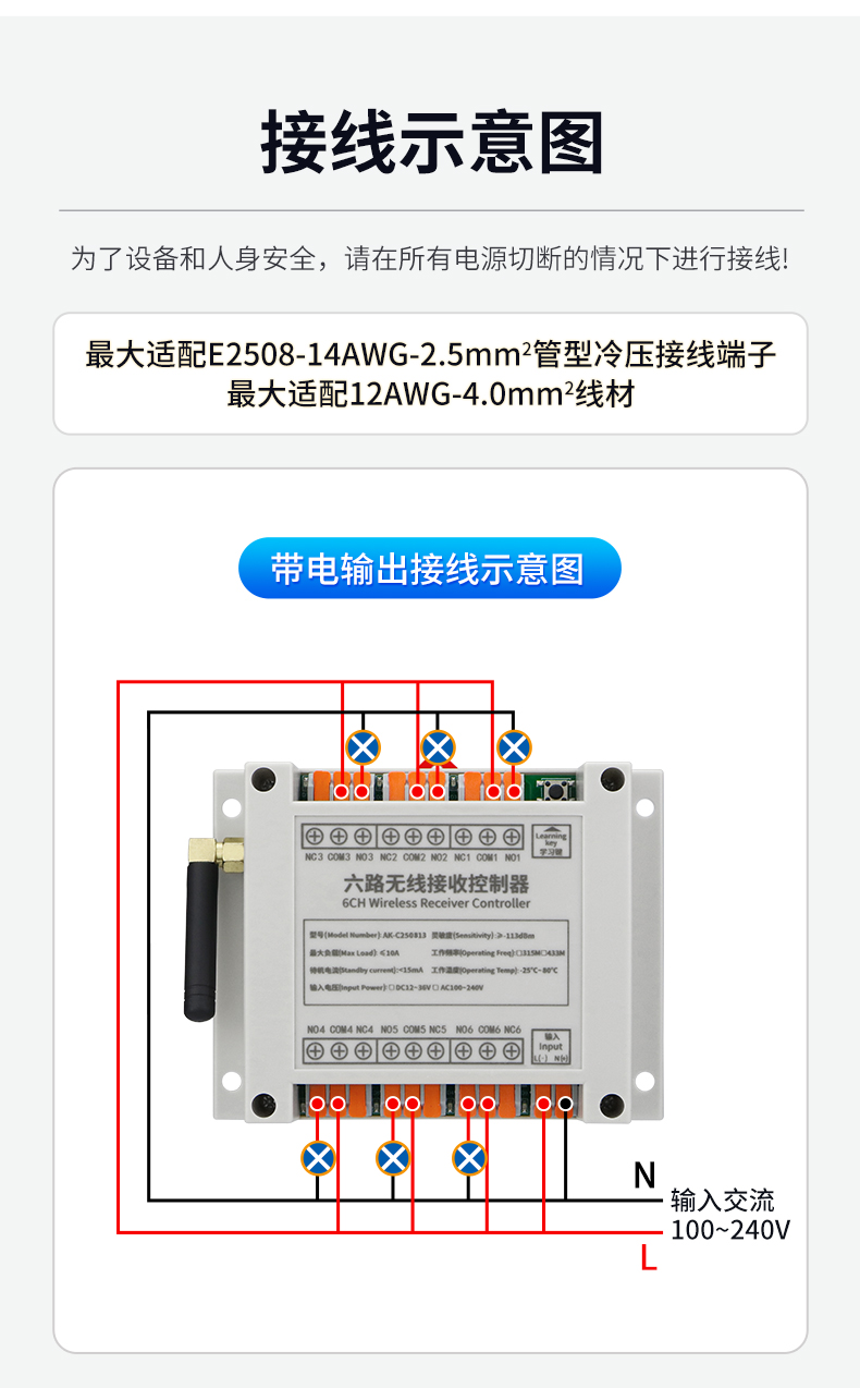 快接线交流工业级遥控开关接线图