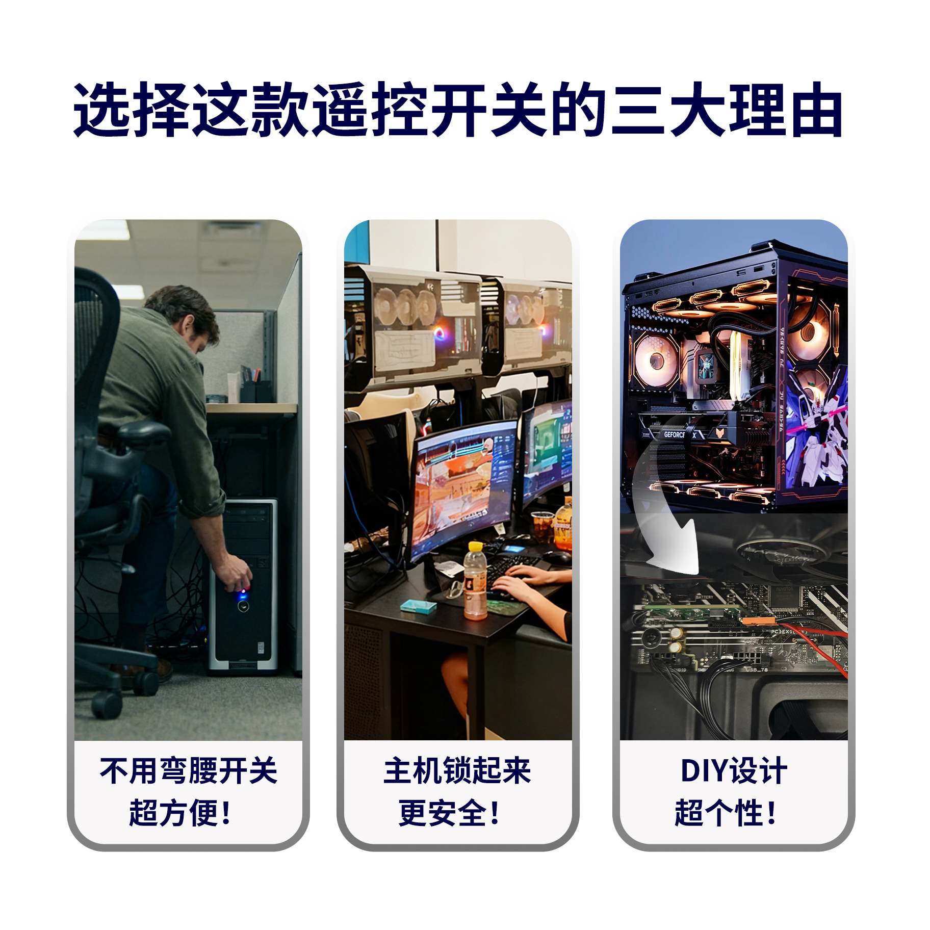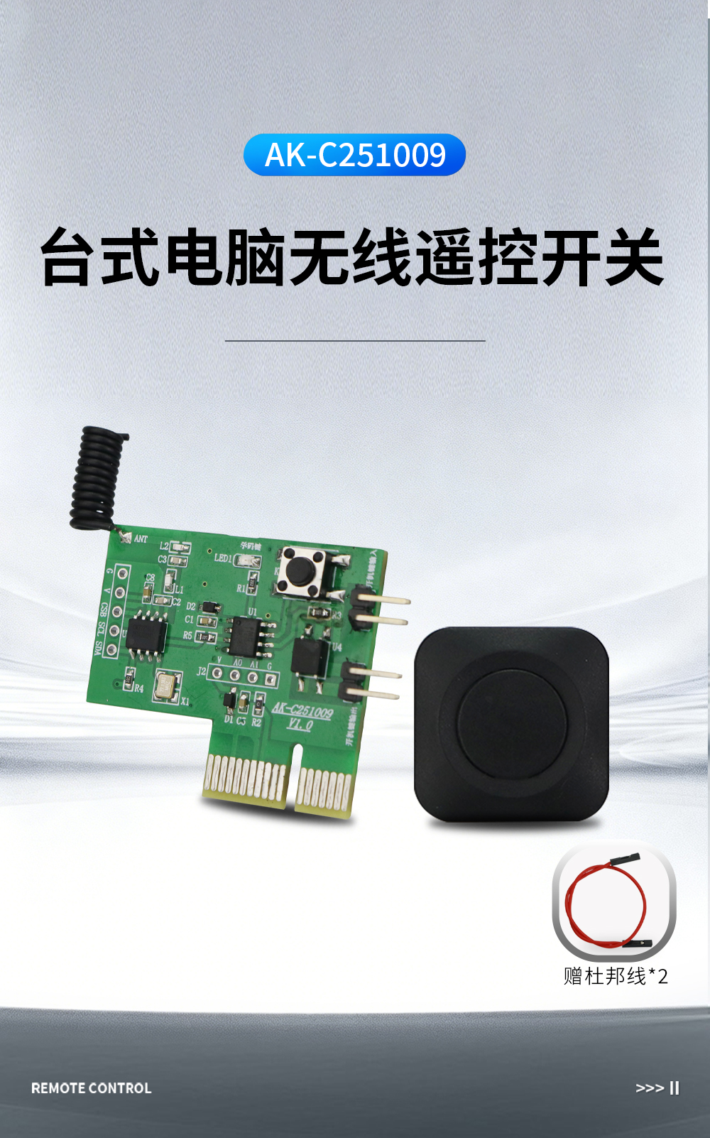 台式电脑无线遥控开关AK-C251009,采用射频控制,与迷你随意贴遥控器配对,方便遥控控制电脑开关机,适合遥控不好开关的主机,网吧锁起来的主机和个人DIY改装主机设备;