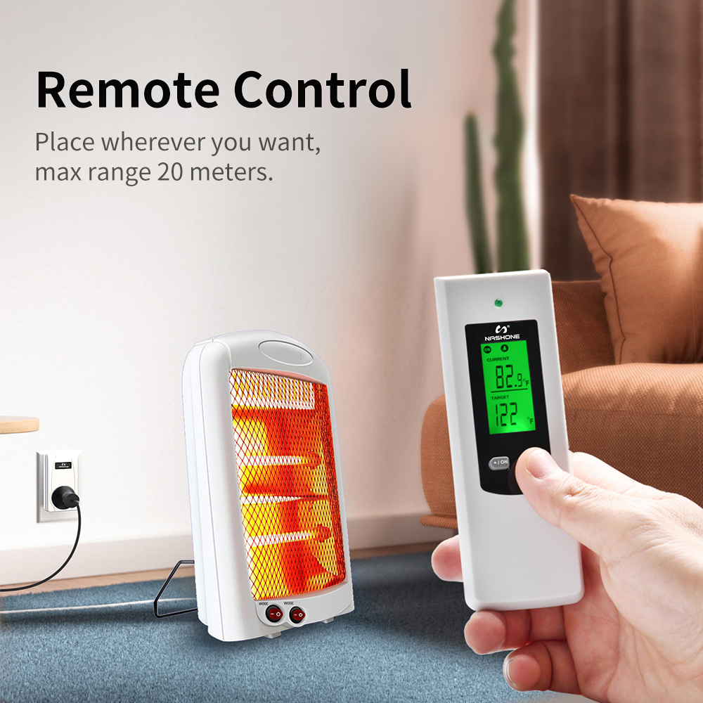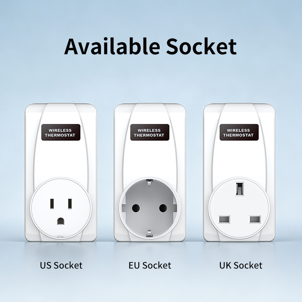 温控器数显全自动智能温控插座 OTS100,有欧规、美规、英规三种规格可选,可做跨境货源;遥控器可设定温度数据,当温度低于设定值时,插座会自动开启通电,让设备自动开始工作调整温度;