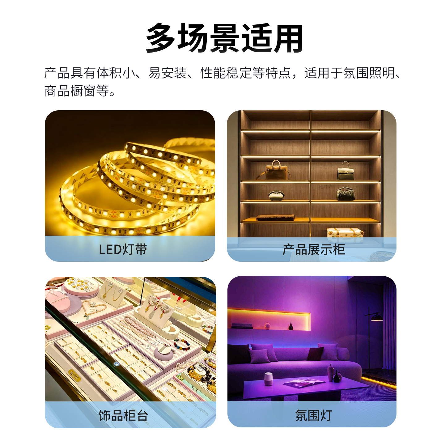 广泛兼容: 专为LED负载优化,同时适用于其他低压工程设备。