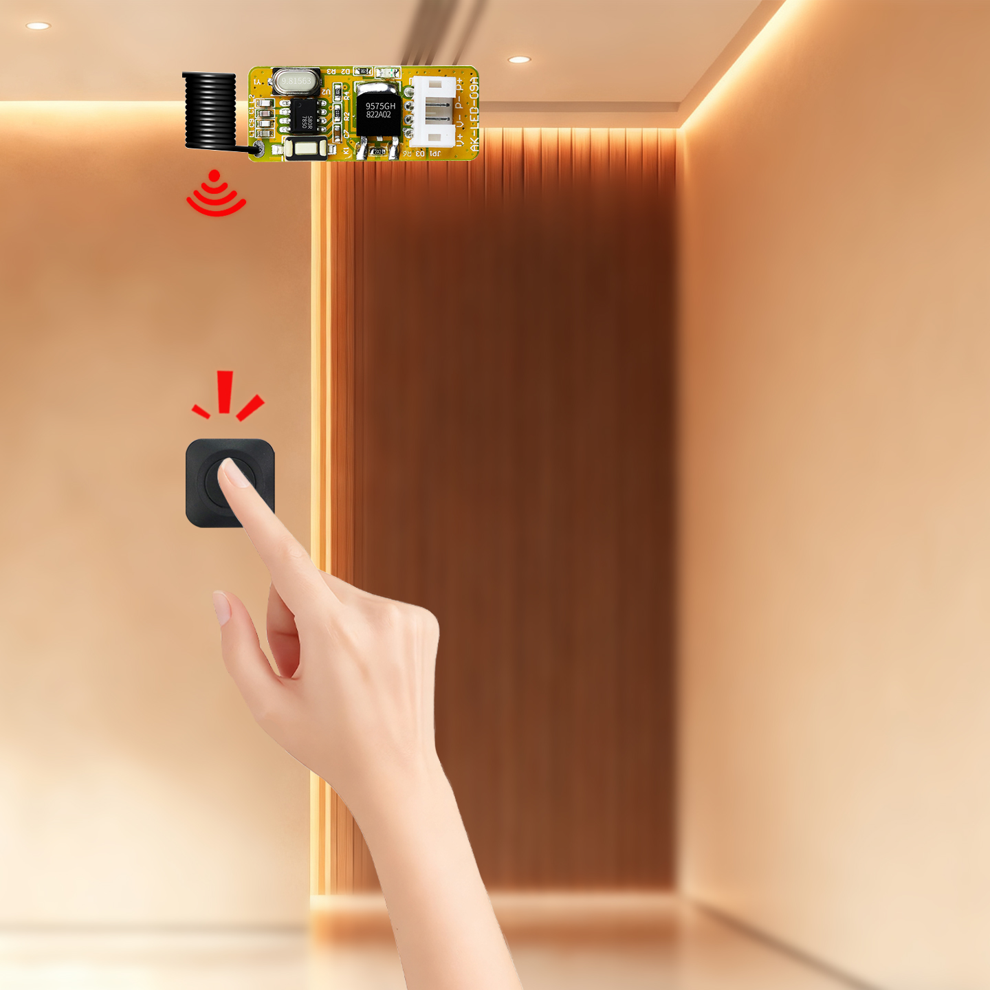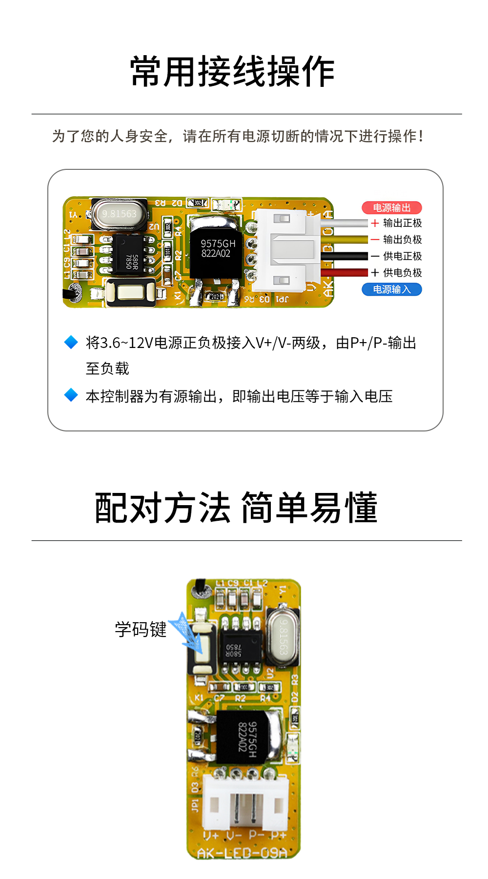 AK-LED-09A 微型单路LED控制开关配对方法: