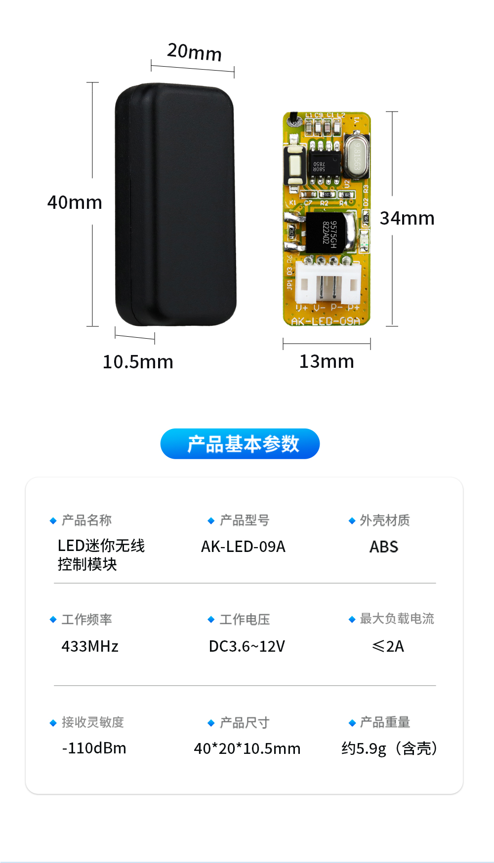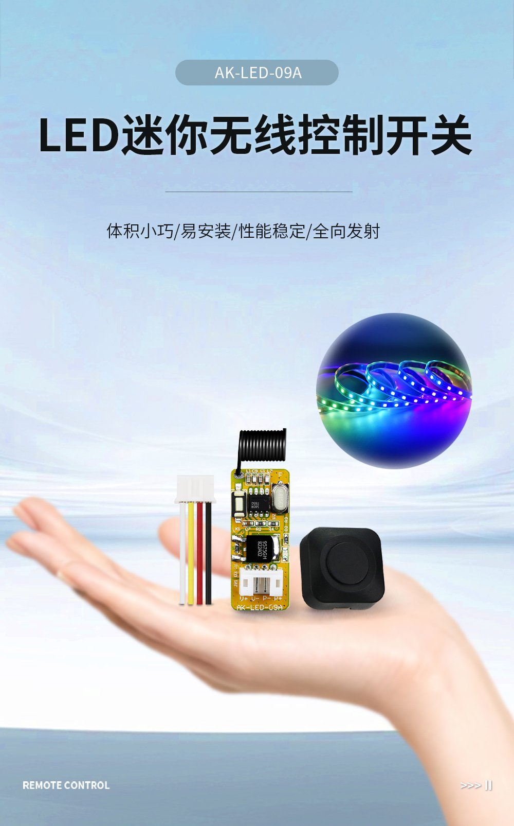 AK-LED-09A 微型单路LED控制开关产品参数: