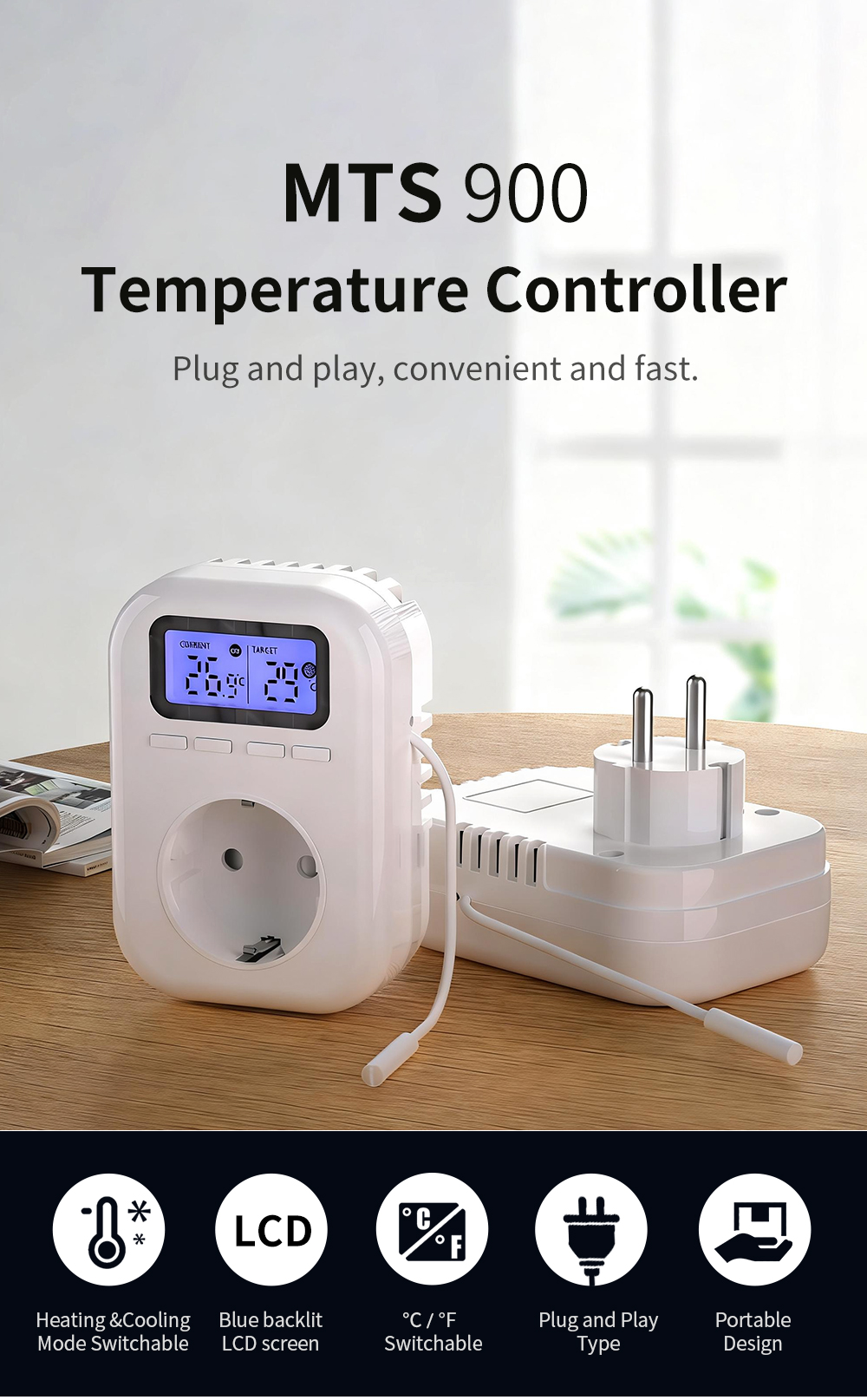 ▪ 便携设计温感智能控温插座 MTS900主要用于:孵化育雏、鸟类爬宠养殖,室内恒温调节、地暖控温、工业管道温控、锅炉泵房恒温控制等领域;